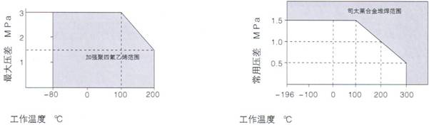 软阀座型 工作温度与最大压差范围 司太莱合金堆焊阀座 工作温度与常用压差范围