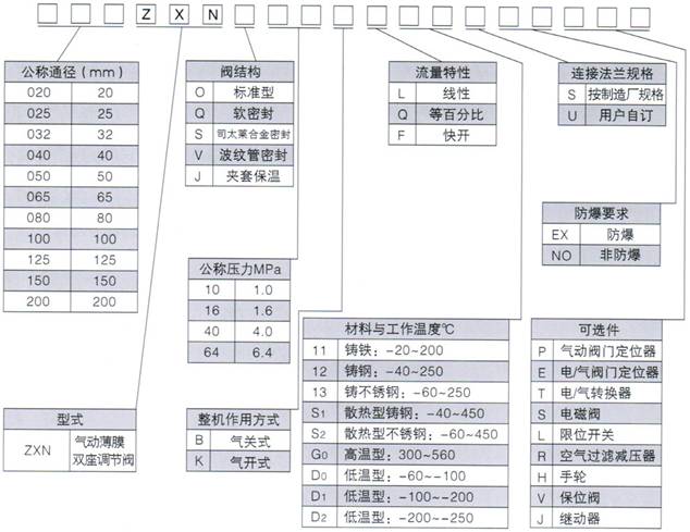 ■ ZXN型气动薄膜调节阀(双座)订货须知