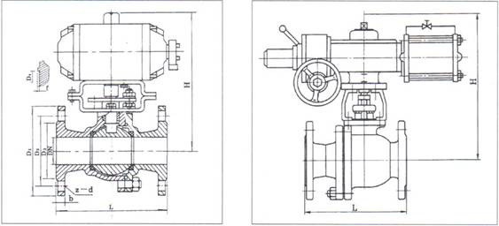 ■ ZSHO-1.6精气动O型切断球阀外形及连接尺寸