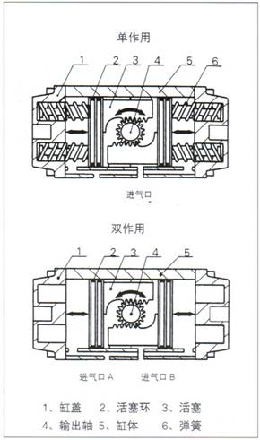 气动活塞式执行机构采用双活塞齿轮条机构,具有结构小、输出大、动作准确、单作用与双作用互换性强等优点。